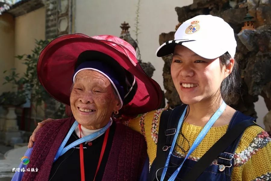 大巴車第一站駛向北邊的喜洲古鎮(zhèn),乘坐觀光游覽車游覽喜洲古鎮(zhèn)。來自鶴慶的蘇煥喜奶奶,已經(jīng)76歲高壽了,在孫女張曉鳳陪同下,踏上了回到十七歲的旅程,奶奶平時一直都在家,很少有機(jī)會出去走走,雖然是大理本地人,但像今天這樣出來玩還是頭一次。
