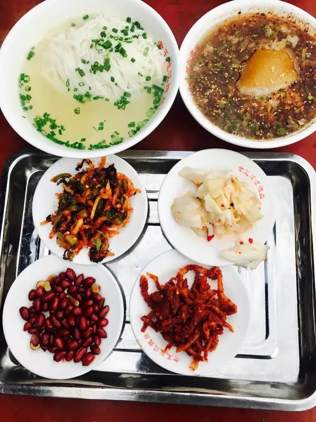 扒肉餌絲也好,過(guò)江餌絲也好,最重要的還是那點(diǎn)扒肉和湯。老王過(guò)江餌絲就在群力門(mén)附近,每天都會(huì)有很多游客及老主顧光臨。過(guò)江餌絲,一套套賣(mài),有大、中、小三種規(guī)格。除了餌絲、肉湯、扒肉,還配上一套“小菜”,有泡菜,有蘿卜條和花生米。