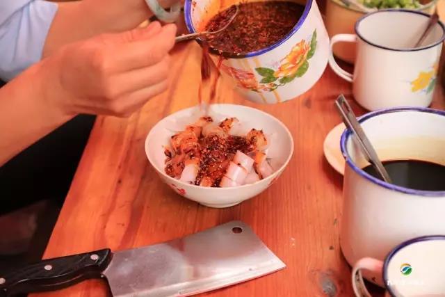 從這一套套的餌絲來(lái)看,巍山人對(duì)“吃”是真的很講究。餌絲從清湯碗里一點(diǎn)一點(diǎn)分到帶佐料的扒肉湯里,扒肉吃在嘴里,肥而不膩,細(xì)膩回甜,餌絲質(zhì)地細(xì)膩,柔軟糯香。