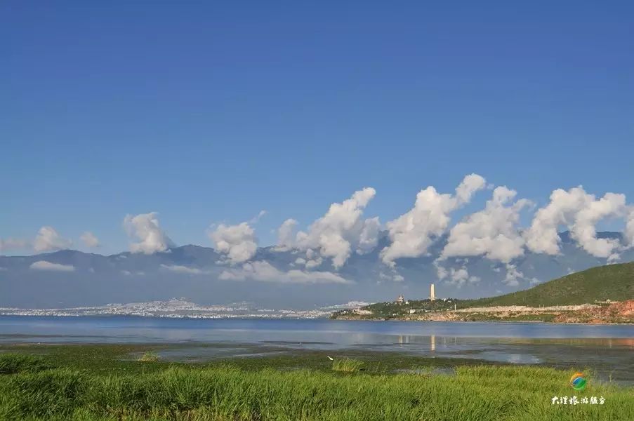 風(fēng)平浪靜時(shí),洱海就像一顆藍(lán)寶石鑲嵌在蒼洱大地