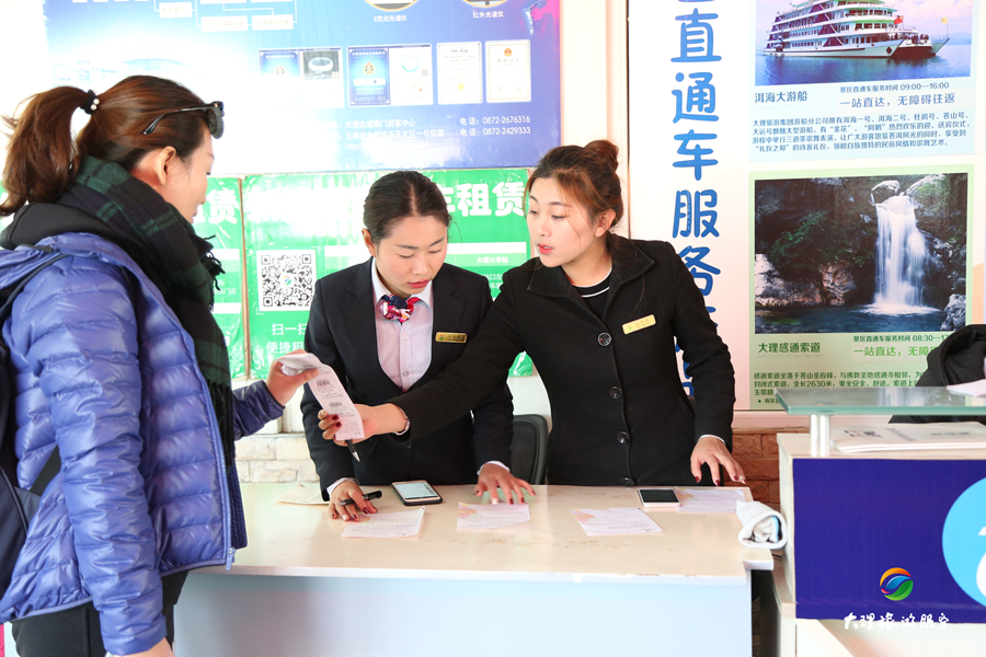 游客中心和服務(wù)崗?fù)こ闪擞慰统鲂械臉屑~和服務(wù)點;景區(qū)直通車是游客往返景區(qū)景點最便捷的出行選擇;觀光游覽車是游客游覽古城最便捷的交通工具;“大理旅游服務(wù)”平臺是游客預(yù)訂產(chǎn)品和路線的好幫手;特色旅游服務(wù)產(chǎn)品,如旅色·旅拍和新能源汽車租賃等都為游客提供了多樣的旅行體驗;大理好禮為游客提供了大理特色產(chǎn)品的推薦與購買服務(wù)......當(dāng)然,還有很多幕后默默付出的工作人員,都為大家的旅程提供了一份服務(wù)與保障。