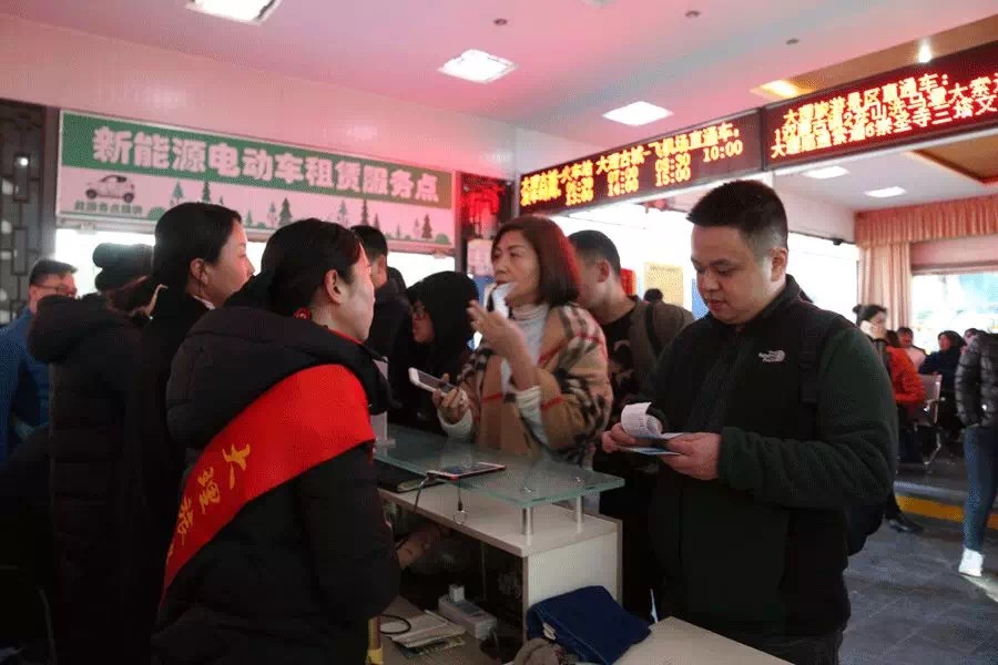 春節(jié),闔家團(tuán)圓的時刻,很多導(dǎo)游、司機等服務(wù)人員,依然在崗,為游客服務(wù)。春節(jié)的大理,人山人海,車流如織,而大理旅游集散中心的每一位一線服務(wù)者,也經(jīng)受了一場高強度的考驗。觀光游覽車、景區(qū)直通車一班接一班,從早到晚;景區(qū)講解員一團(tuán)接一團(tuán),沒有停歇;服務(wù)咨詢一個接一個,沒有間斷……